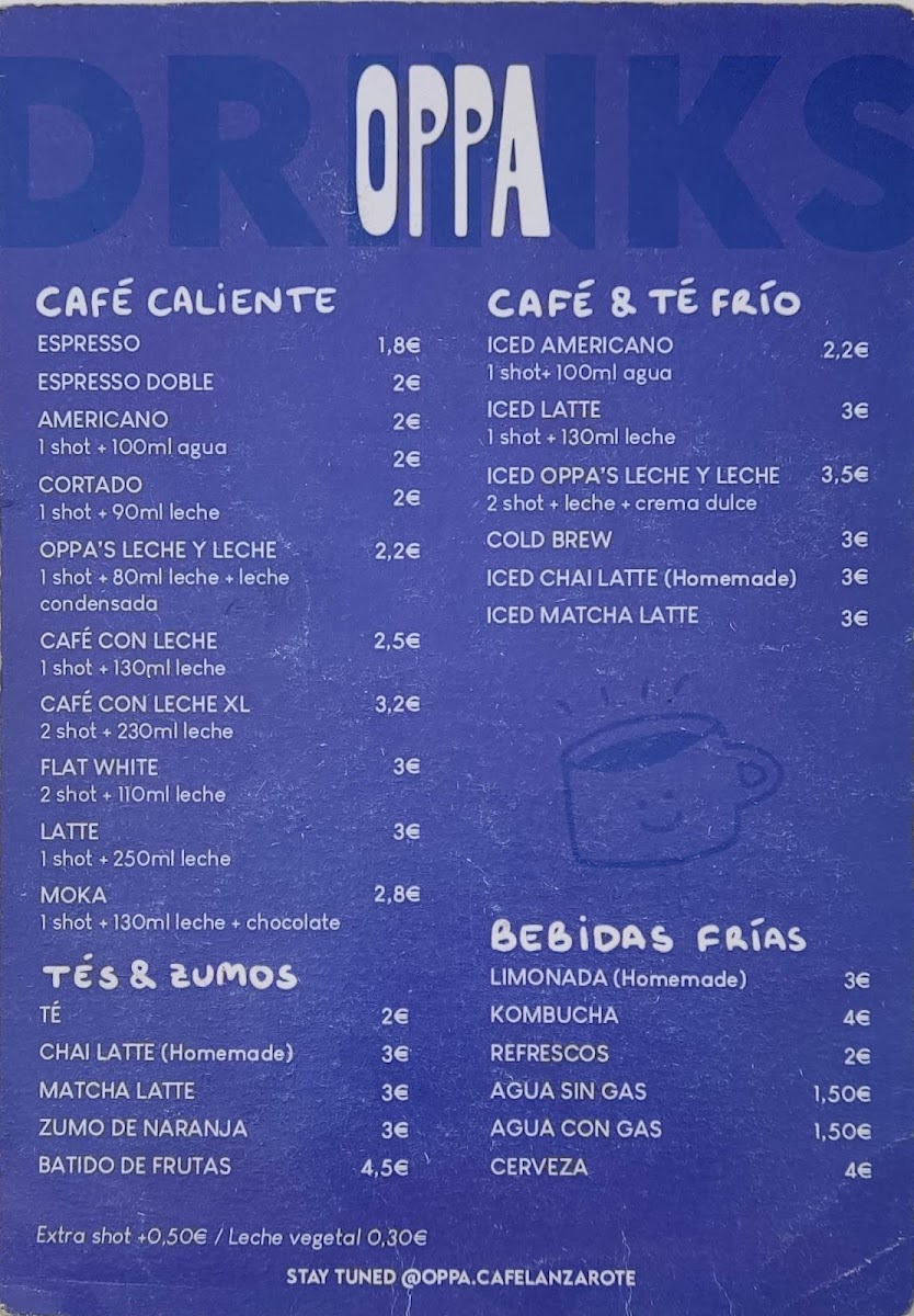 Welcome to Oppa Specialty Coffee and Breakfast, a charming little café nestled in Costa Teguise, Las Palmas. This spot is a brunch lover's paradise, where the aroma of specialty coffee fills the air and the warmth of friendly staff greets you at the door. Guests rave about the delightful breakfast options, from fresh sandwiches to indulgent pastries, including their highly praised cinnamon rolls.
